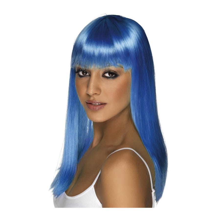 Longue perruque glamour de couleur bleue, pour femme ou adolescente. La perruque est composée de cheveux lisses et d'une frange. Cet accessoire sera parfait pour une soirée disco ou pour un enterrement de vie de garçon ou de jeune fille où tout est permis!