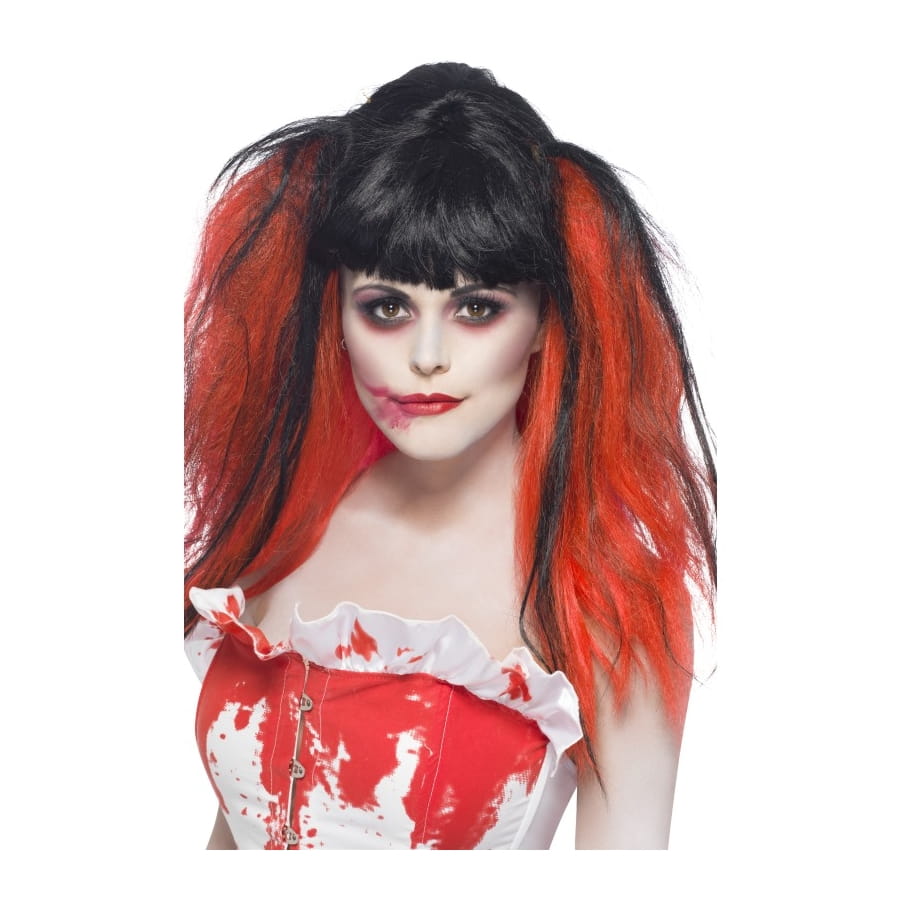 Arborrez une chevelure effrayante et ébouriffée avec cette très volumineuse perruque gouttes de sang spéciale Halloween. La perruque est de couleur rouge et noire, avec une petite frange. Elle peut vous aider à compléter un déguisement de poupée morbide, de mariée sanguinaire et bien d'autres encore.