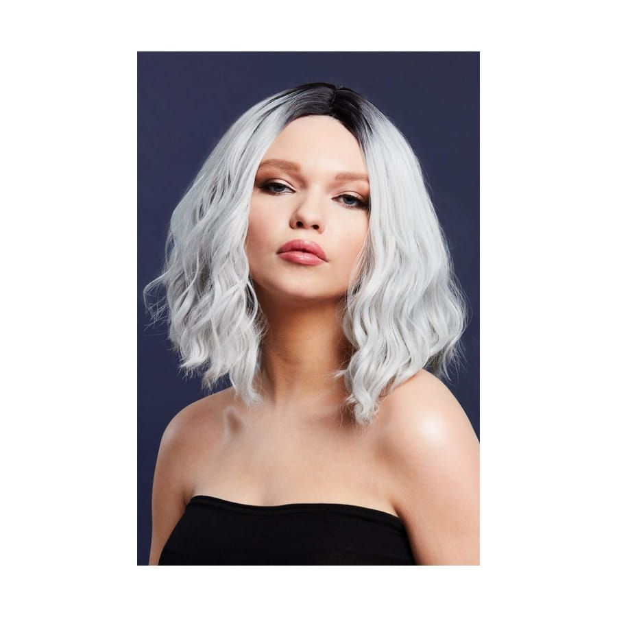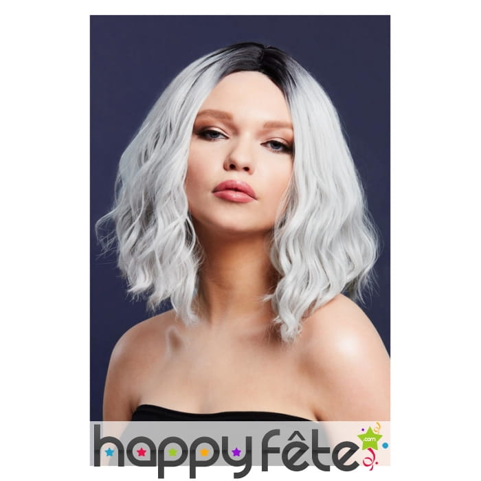 Mêlez charme et séduction, en arborant cette perruque gris argent wavy avec racines noires, et rehaussez votre tenue de la plus belle des manières.