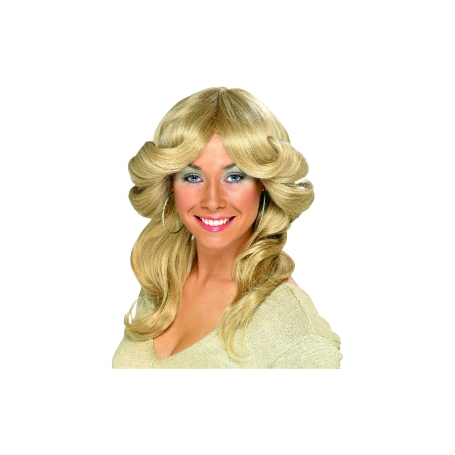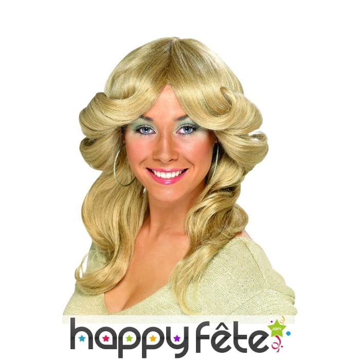Perruque de couleur blond pour femme avec de très belles boucles. Cette perruque est parfaite si vous souhaitez vous déguiser en célébrité de cinéma ou de série télévisée.