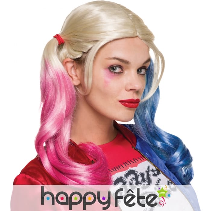 Pour parfaire votre look et incarner dans toute sa splendeur l'ennemie de Batman dans la série animée, arborez cette perruque Harley Quinn suicide squad, officielle.