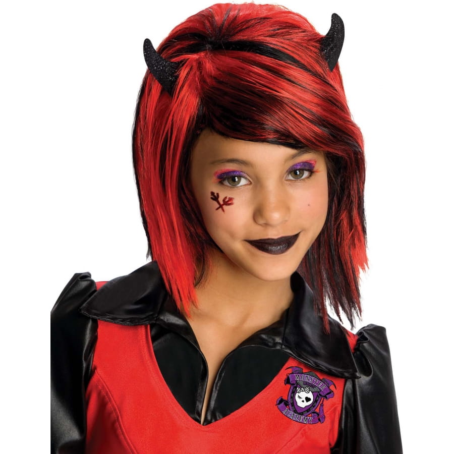 Pour intégrer le lycée des monstres, cette perruque Helzébeth est essentielle ! Jeunes demoiselles, à l'occasion d'Halloween, transformez-vous en petite diablesse envoûtante. Adoptez cette superbe perruque sous licence Monster High. Elle présente des cheveux mi-longs jusqu'à la nuque, de couleur noire et rouge, légèrement coiffés vers le côté. Cette chevelure est parfaite pour compléter un look d'écolière gothique, sans oublier un maquillage bien sombre !