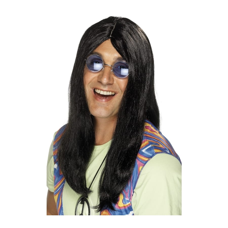 Entrez totalement dans le rôle de votre personnage hippie ! Il ne suffit pas de porter quelques vêtements appropriés, il faut bien sûr respecter la coiffure à la mode à cette époque. les hommes avaient de longs cheveux qu'ils laissaient lâchés, ou qu'ils attachaient selon leur convenance. Cette perruque d'hippie est le parfait accessoire qu'il vous faut ! Vous aurez de longs cheveux noirs, avec une raie sur le côté. Rajoutez de grosses lunettes de soleil, et votre tenue sera irréprochable !