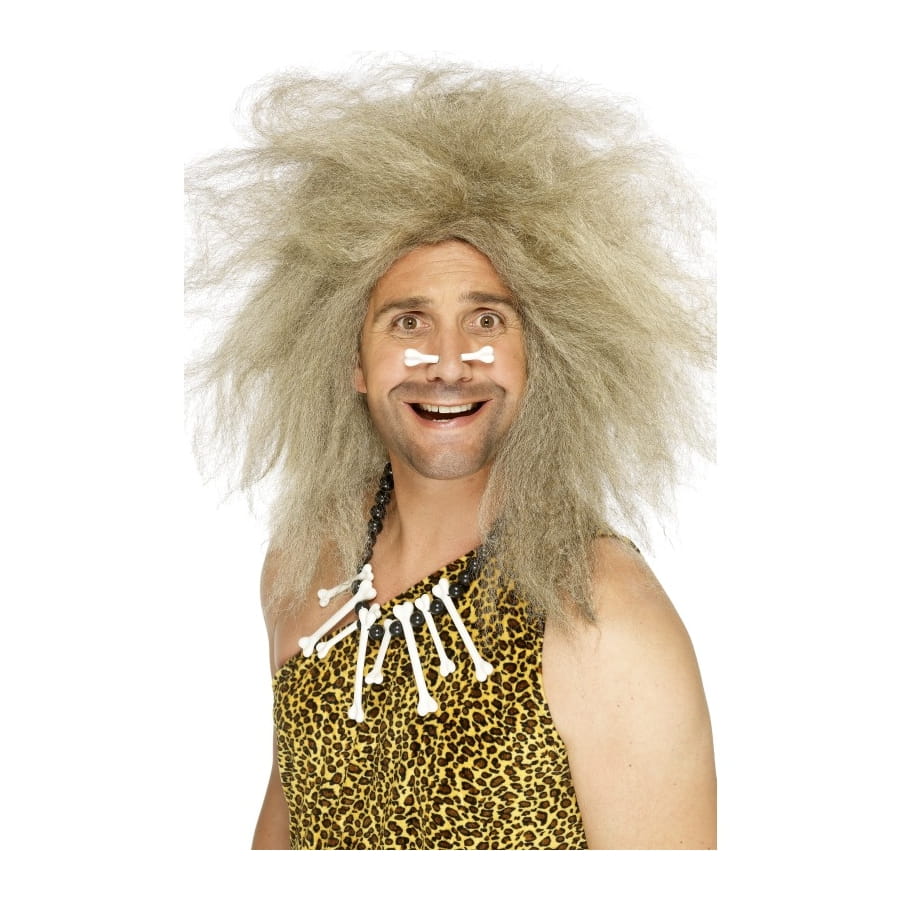 Perruque d'homme des cavernes de couleur blonde, pour homme. La perruque est composée de cheveux ébouriffés et secs pour un effet sauvage. Utilisez cette perruque pour vous transformer en membre de la Famille Pierrafeu à l'occasion d'une fête basée sur le thème de la Préhistoire.