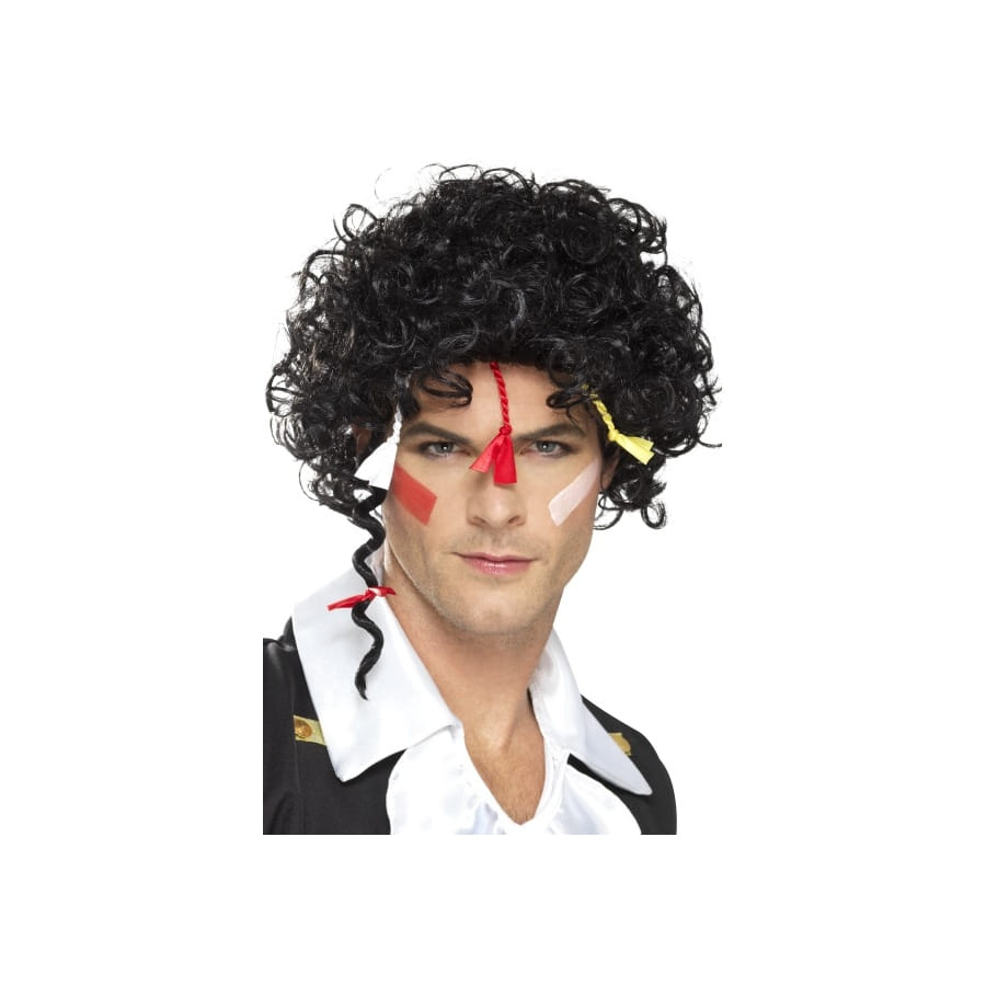 Jouez de vos charmes Messieurs avec cette perruque homme romantique noire bouclée. Cette perruque est dotée de petites tresses de couleur jaune et rouge tombant sur le devant et sur un côté, une longue mèche vient caresser les épaules. Un petit ruban rouge est attaché à cette mèche pour donner un petit côté coquin au séducteur que vous incarnerez à merveille grâce à cette perruque.