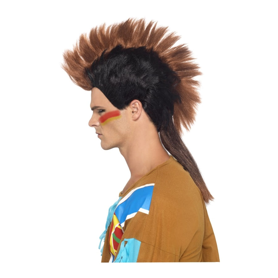 Pour un thème comme Amérique surprenez tout le monde avec cette perruque d'indien. Tout le monde sera stupéfait par votre déguisement. Cette perruque est de couleur noir avec une crête marron, les cheveux sont plus long à l'arrière.
