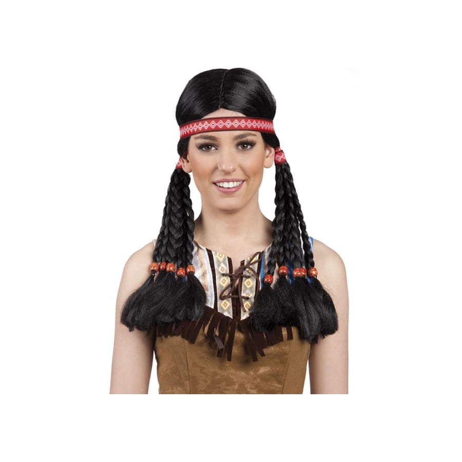 Il ne vous reste plus qu'à mettre cette perruque indienne avec fin bandeau sur votre tête pour que vous soyez plus belle que l'héroïne de Disney Pocahontas.