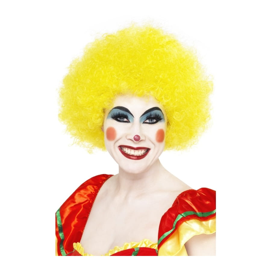 Perruque de clown de couleur jaune fluo, pour femme ou adolescente. La perruque est courte, bouclée et volumineuse. Complétez votre déguisement de clown avec cette perruque flashy et vous serez sûre d'attirer l'attention de tous les enfants présents dans un anniversaire ou dans un carnaval!