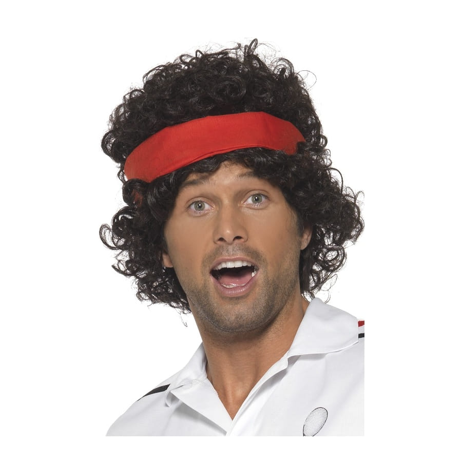 Pour vous métamorphosez en joueur de tennis vous aurez besoin de cette perruque. De couleur châtain, les cheveux sont bouclés et arrive jusqu’à la nuque. Il y a un bandeau de couleur rouge dessus. Vous pourrez porter cette perruque pour le carnaval.