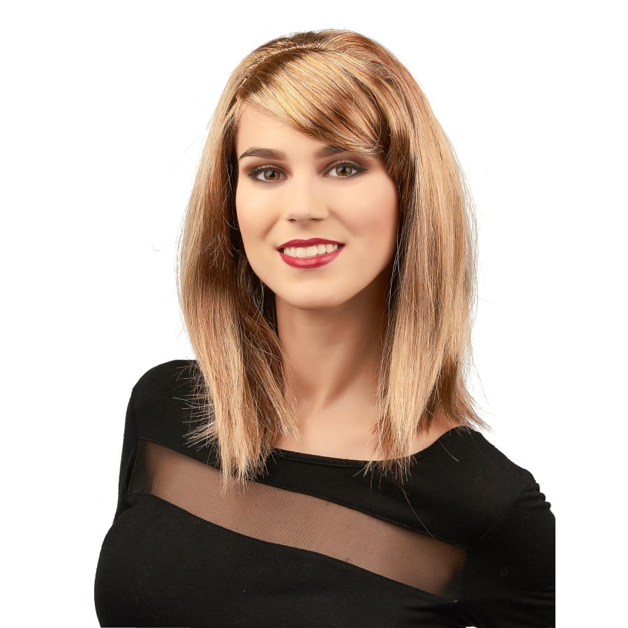 Les avis clients concernant perruque lisse blonde mèches caramel, mi longue