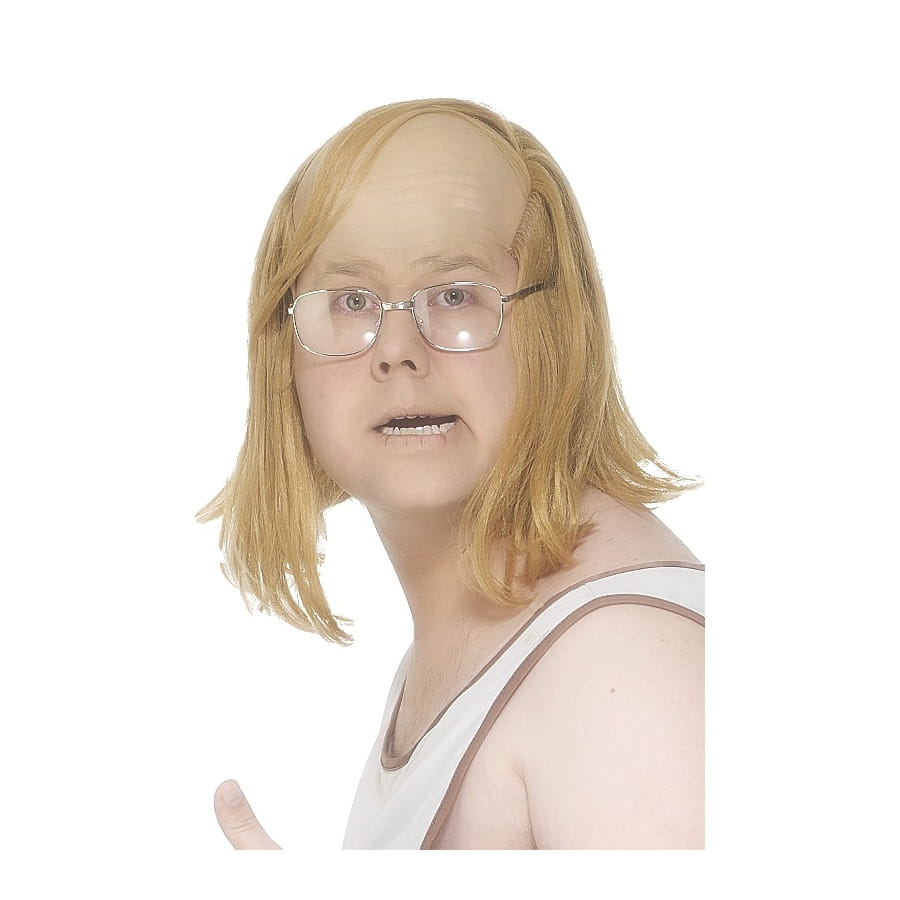 Perruque de couleur blonde avec crâne chauve, pour homme ou adolescent. Cette perruque est la réplique parfaite de celle d'Andy de la série britannique "Little Britain". Si vous avez vu et adoré cette série, cette perruque vous sera indispensable!