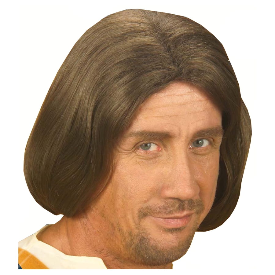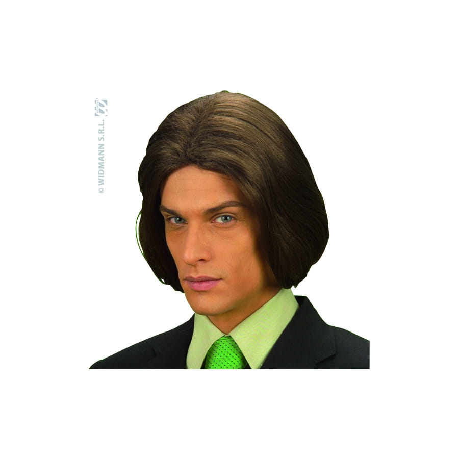Perruque à longue chevelure droite et lisse. Cet accessoire pour homme est de couleur châtain. Grâce à cette perruque, vous deviendrez un personnage radicalement différent, vous permettant de vous transformer en prince pour un carnaval.