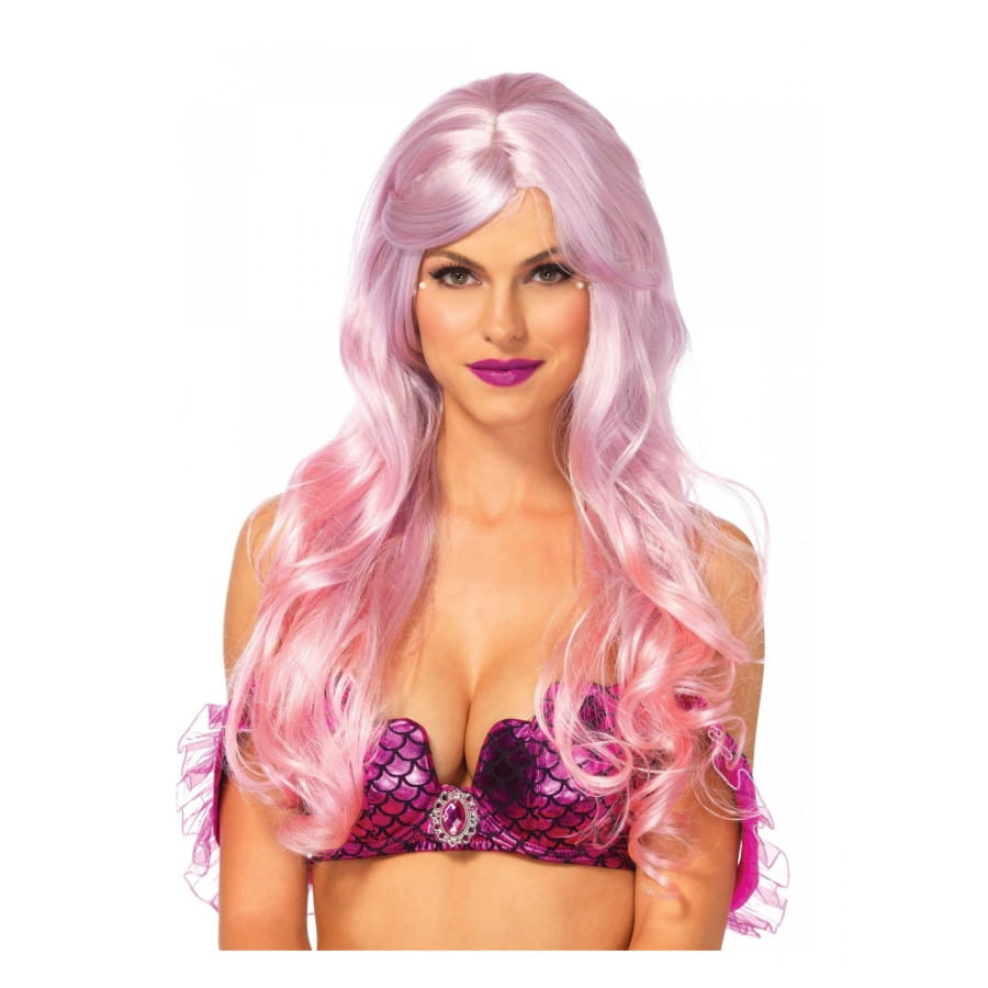 La perruque longue rose de sirène pour adulte de luxe est destinée aux femmes.