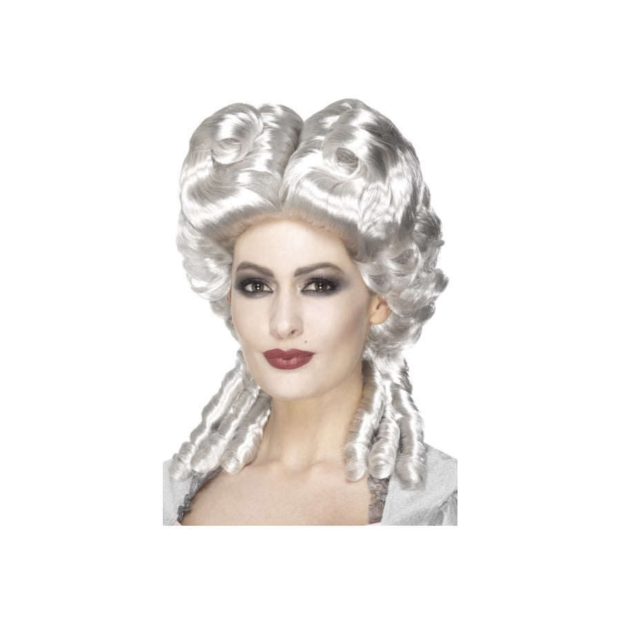Si vous avez jeté votre dévolu sur une belle robe de marquise parmi nos déguisements pour votre soirée costumée, nous vous proposons un accessoire indispensable : une perruque Marie Antoinette blanche. Cette perruque s'apparente aux coiffures des femmes d'une toute autre époque, bombée sur le dessus et des boucles tombant sur les épaules. Elle vous rendra tout simplement sublime.