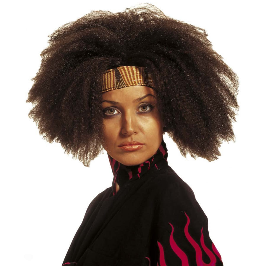 Tentez une nouvelle expérience en adoptant une coiffure qui sort de l'ordinaire ! Affirmez clairement votre style en portant cette perruque marron afro volumineuse pour femme. Ce modèle propose des cheveux afro de couleur marron foncé accompagnés d'un large bandeau. Il se mariera parfaitement avec le style vestimentaire hippie.
