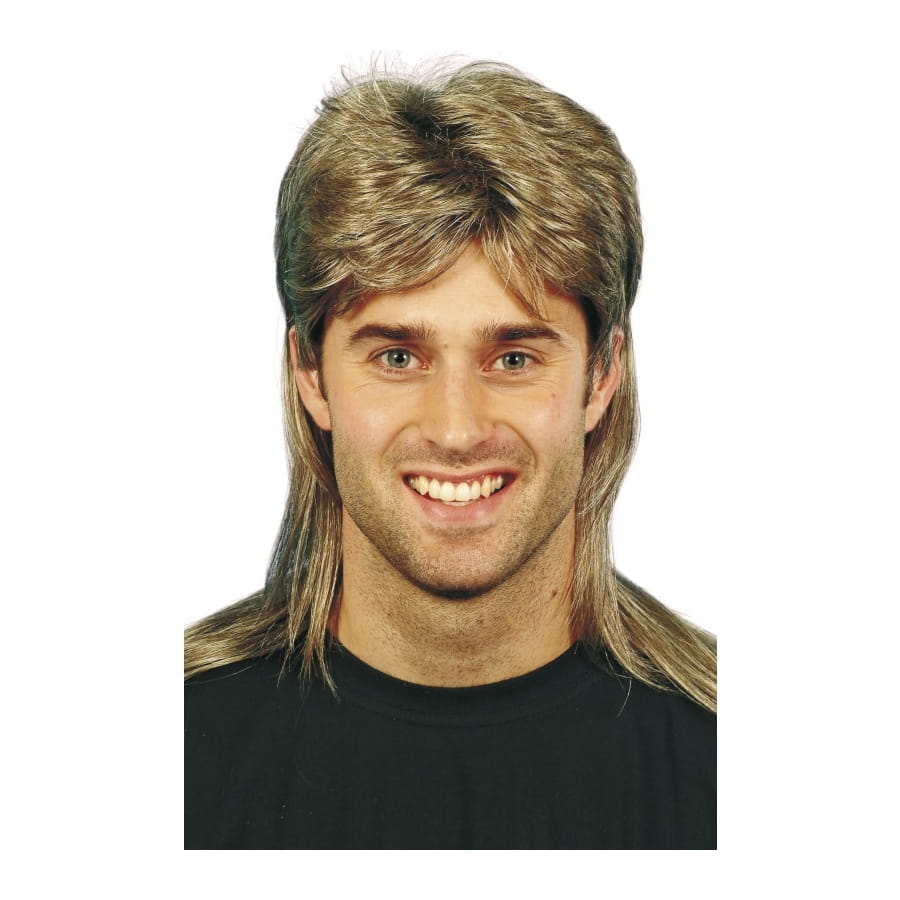 Perruque style "Mullet" pour homme. Cet accessoire est composé d'une frange et de cheveux longs à l'arrière. C'est la coupe typique des rockers des années 70-80.