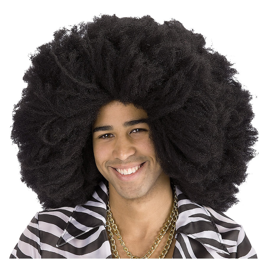 Que pensez-vous d'une perruque noire afro, volumineuse pour adulte comme accessoire lors d'une fête sur le thème des années 70 et 80 ?