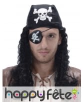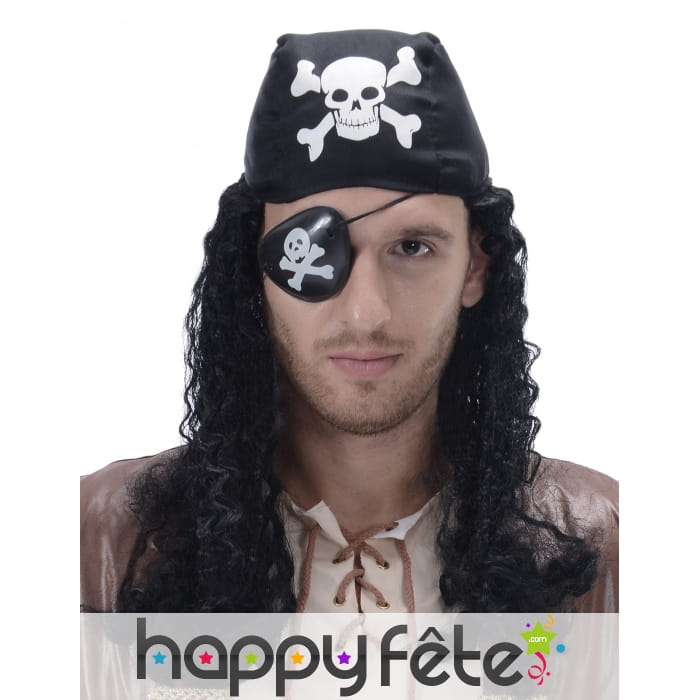 Messieurs, si vous avez opté pour un costume de pirate à l'occasion de la fête des morts, nous avons l'accessoire adapté à votre tenue. En effet, nous vous proposons la perruque noire avec bandana de pirate qui reste disponible sur notre site. Elle est constituée d'une chevelure noire, mi- longue et bouclée, le tout sous un bandana de pirate de couleur noire également. Il présente comme motif une tête de mort blanche.