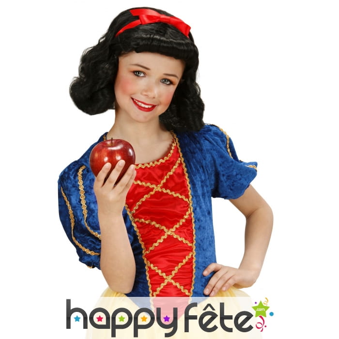 Coiffez-vous comme la princesse avec cette Perruque noire avec noeud rouge pour enfant.