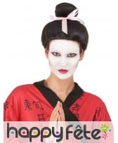 La perruque noire de Geisha pour femme est constituée de cheveux synthétiques.