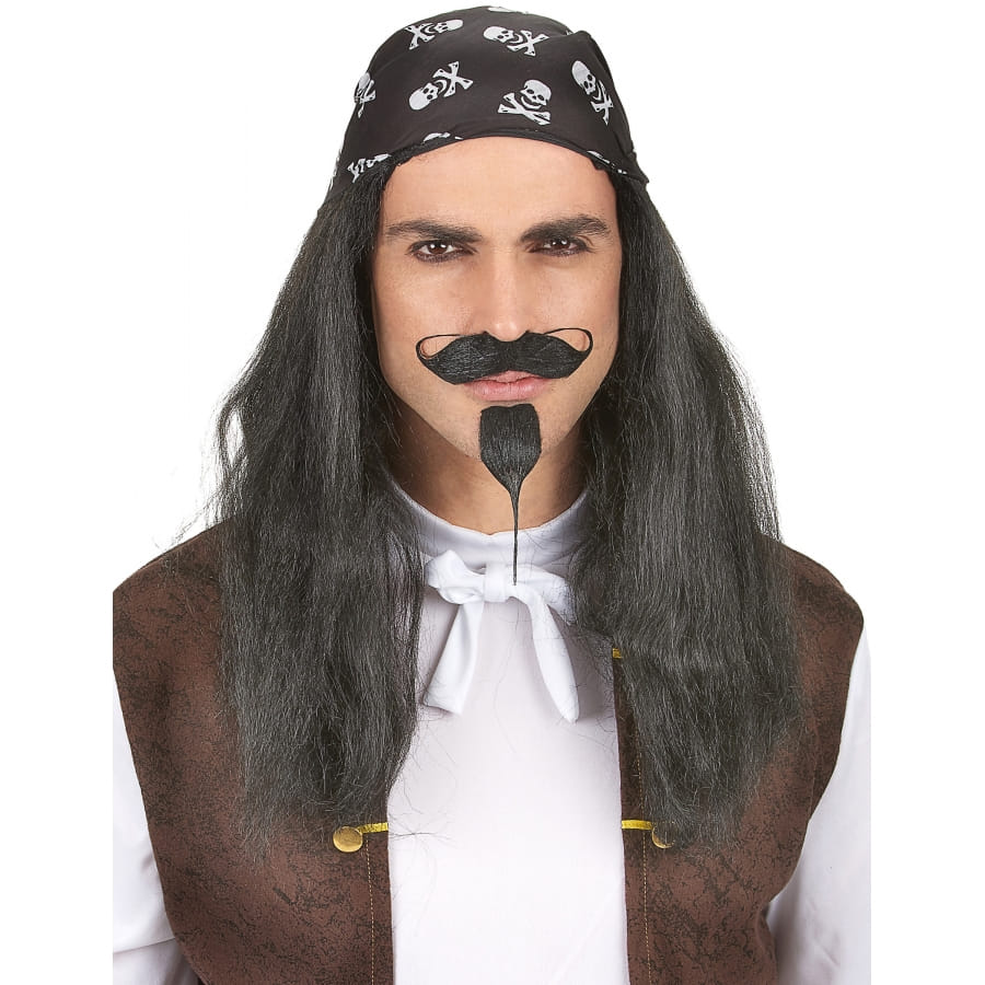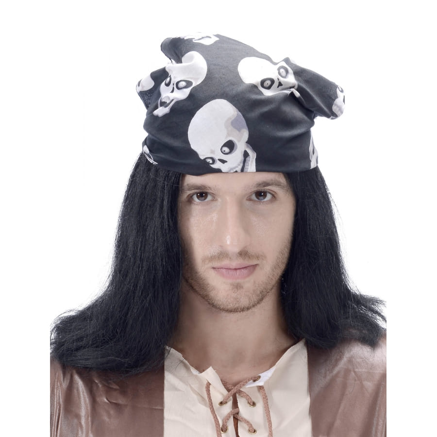 Cette perruque noire de pirate avec bandana noir complètera votre déguisement.