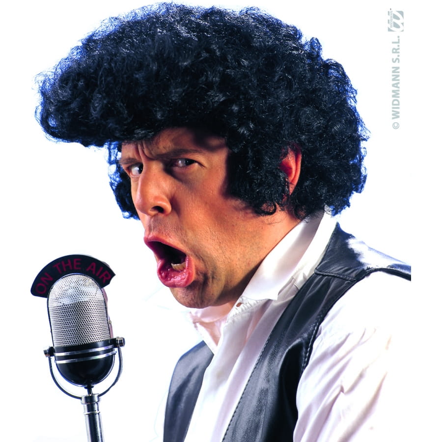 Perruque de rockeur avec banane. Cet accessoire pour homme est de couleur noir. Cette perruque est parfaite pour incarner tous les personnages Rock N' Roll tels qu'Elvis ou Fonzi.