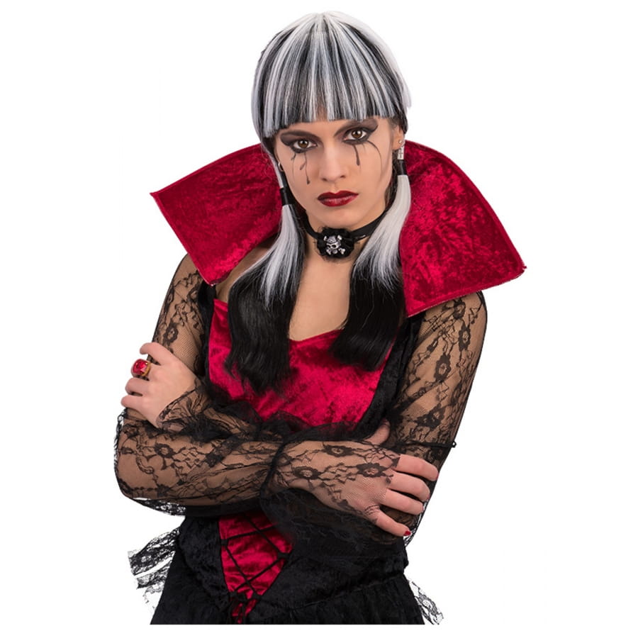 La perruque noire et blanche longue femme sera un complément parfait pour un costume gothique.