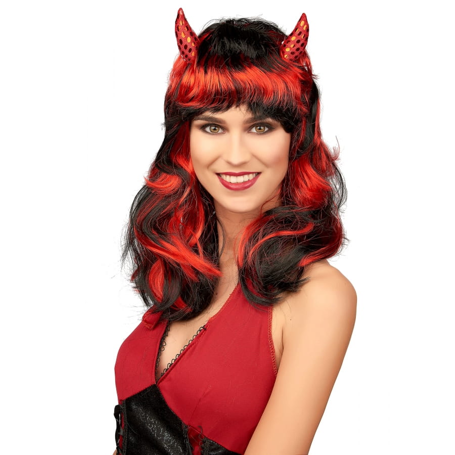 Cette perruque sera le complément idéal pour votre déguisement de diablesse à l'occasion d'halloween.