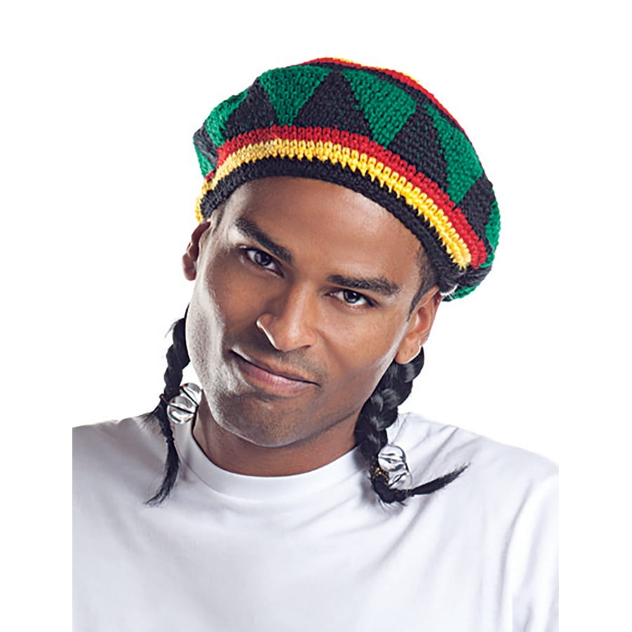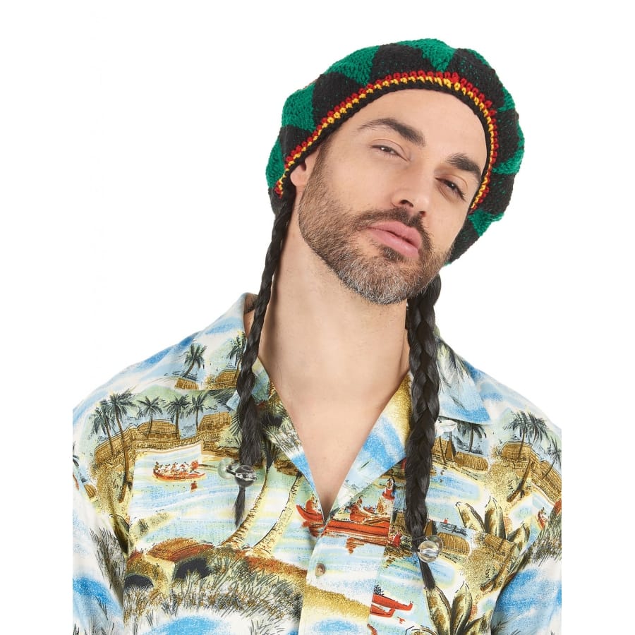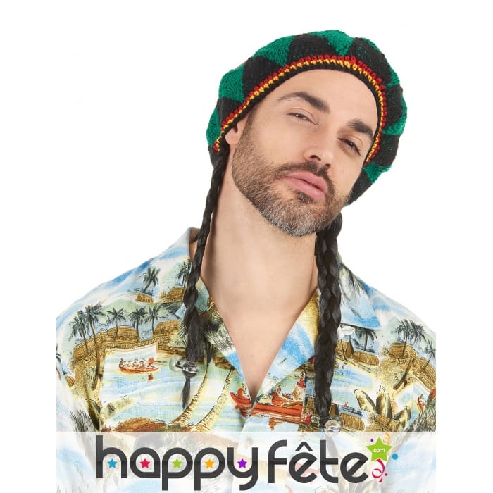 Le temps d'une soirée costumé ou d'un carnaval, entrez dans la peau d'un vrai rastafari en portant cette perruque rasta avec bonnet brodé pour adulte.