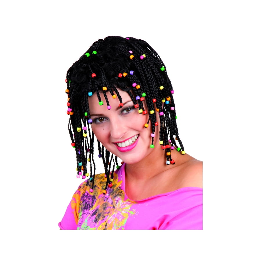 Avec cette belle perruque rasta vous pourrez incarner un rasta ou encore le porter pour une fête sur le thème exotique. Cette perruque est de couleur noir avec des tresses, il y a des perles colorées sur les tresses.