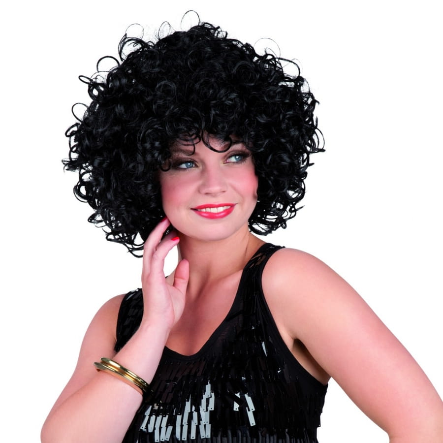 Faites vibrer la piste de danse au bal costumé avec cette perruque ronde bouclée noire.