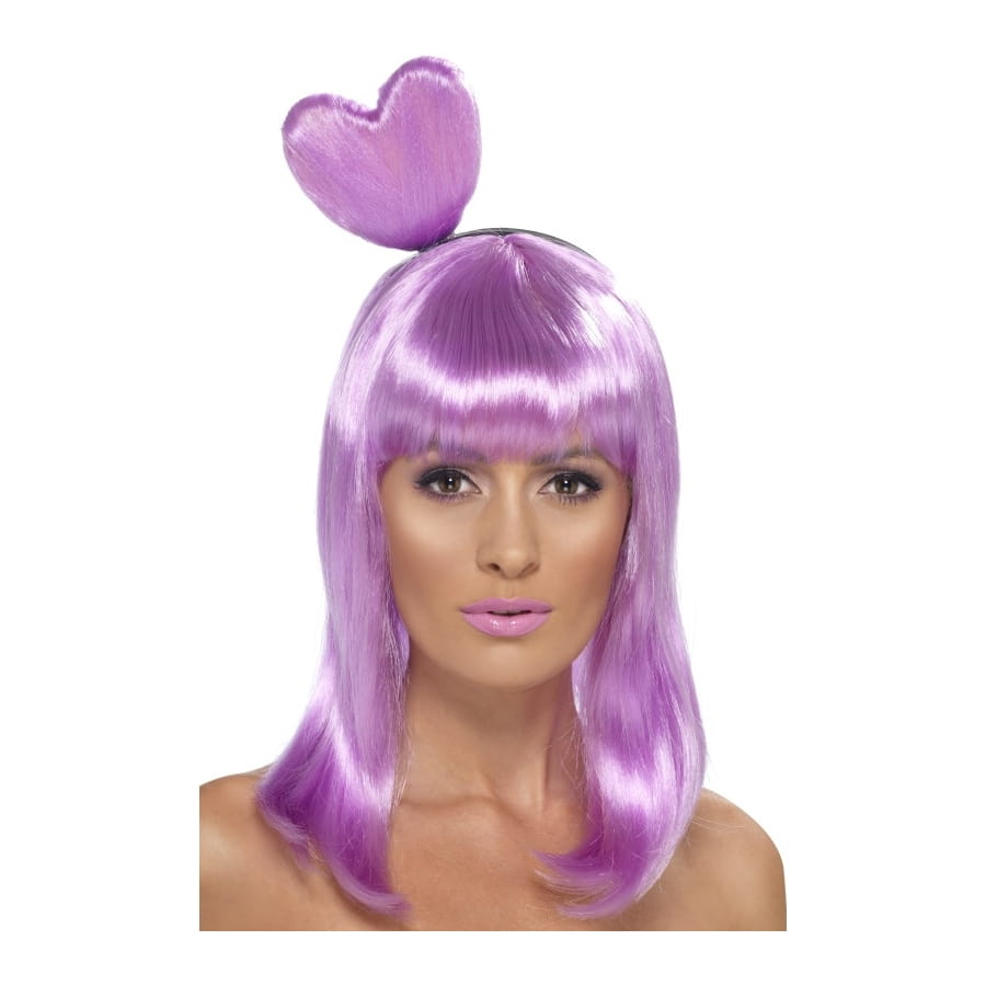 Perruque de couleur violette pour femme ou adolescente. Les cheveux sont droits, lisses et soyeux avec une frange. Ils seront parfaits pour agrémenter une tenue flashy pour un carnaval, un enterrement de vie de garçon ou de jeune fille ou d'anniversaire.