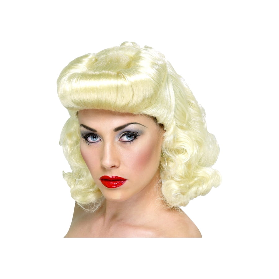 Pour incarner la pin up cette perruque Sandy Grease est l'accessoire de déguisement qu'il vous faut. De couleur blond platine, elle arrive jusqu'aux épaules, coiffée avec de légères ondulations vous pourrez la porter pour incarner une star, une pin up, ou une danseuse de cabaret.
