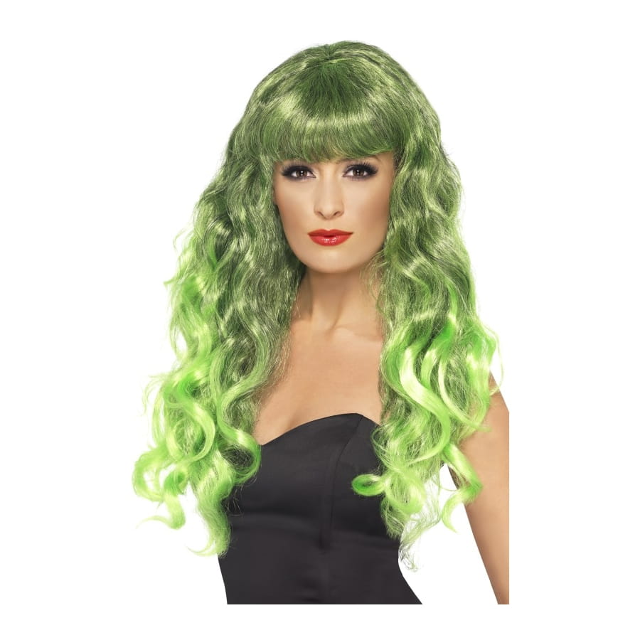 Vous avez envie d'incarner une belle sirène vous aurez besoin de cette perruque ou vous pouvez aussi incarner une sorcière avec. Cette perruque de couleur vert, elle est foncée sur le haut et le ton est plus clair sur les pointes. Cette perruque a de belle ondulation, elle est longue.