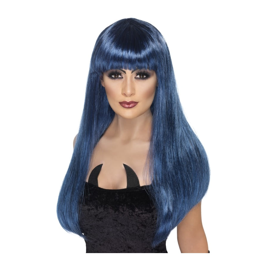Perruque de sorcière de couleur bleue, pour femme ou adolescente. La perruque est longue et droite, avec une frange. Non seulement vous donnera-t-elle un look singulier, mais elle apportera également une touche sexy à votre déguisement.