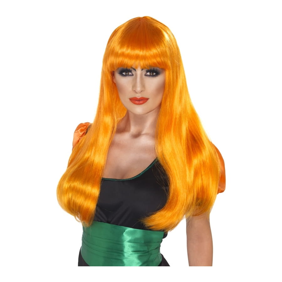 Cette perruque de sorcière vous donnera le style que vous souhaitez pour halloween. Vous pourrez porter aussi cette perruque pour le carnaval. Il est de couleur orange, il y a une frange épaisse, elle arrive jusqu'au mi-dos.