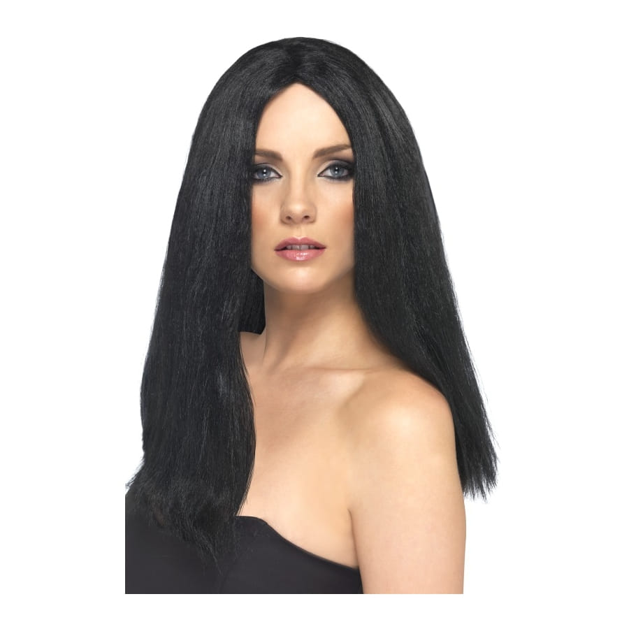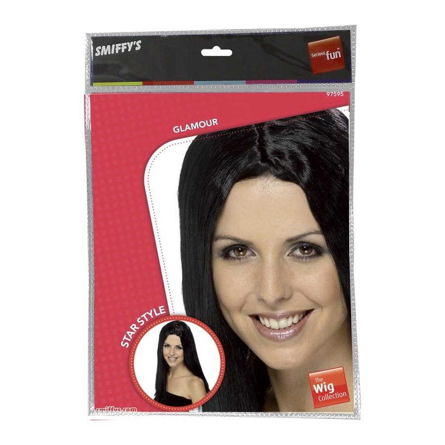 Cette perruque de star vous pourrez la porter pour incarner une célébrité ou encore pour un enterrement de vie de jeune fille. Elle changera votre style. Cette perruque est de couleur noir, elle est mi longue, elle dépasse légèrement les épaules.