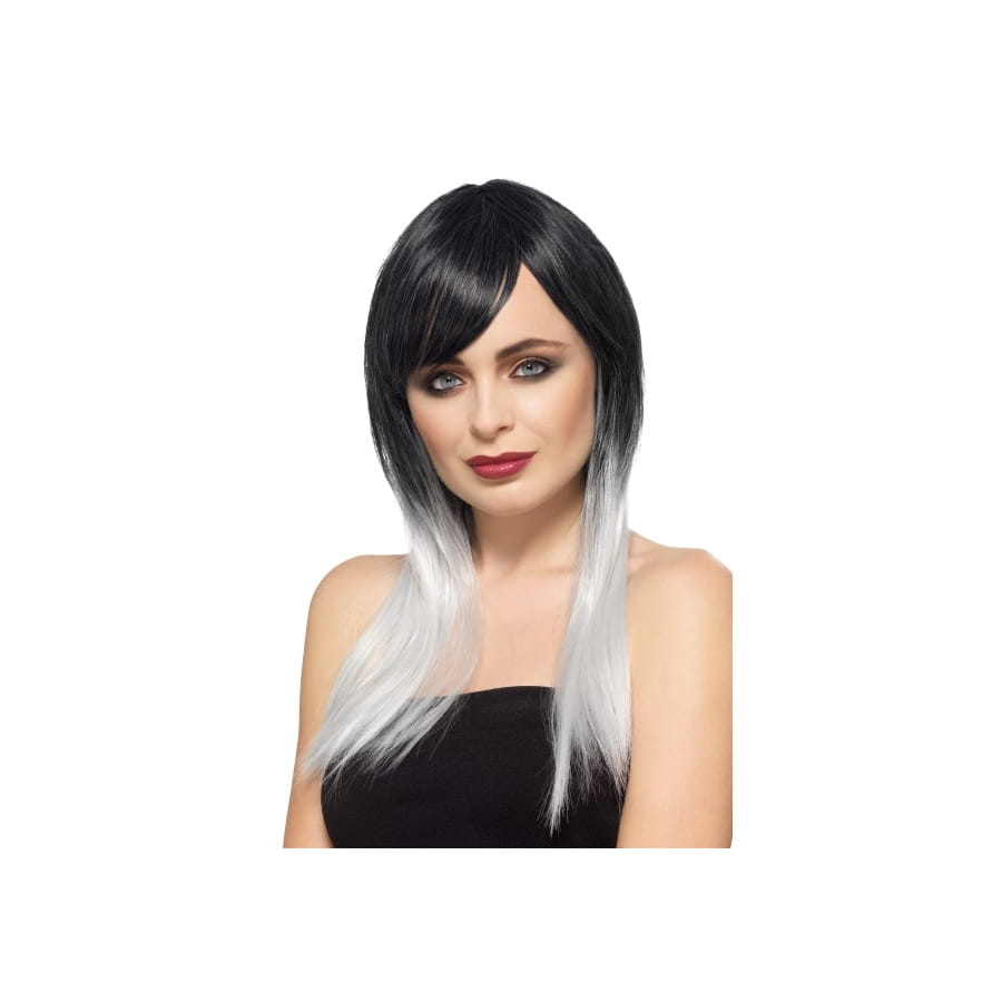 Cette perruque stylisable noire pointes blanches se prêtera parfaitement au jeu.