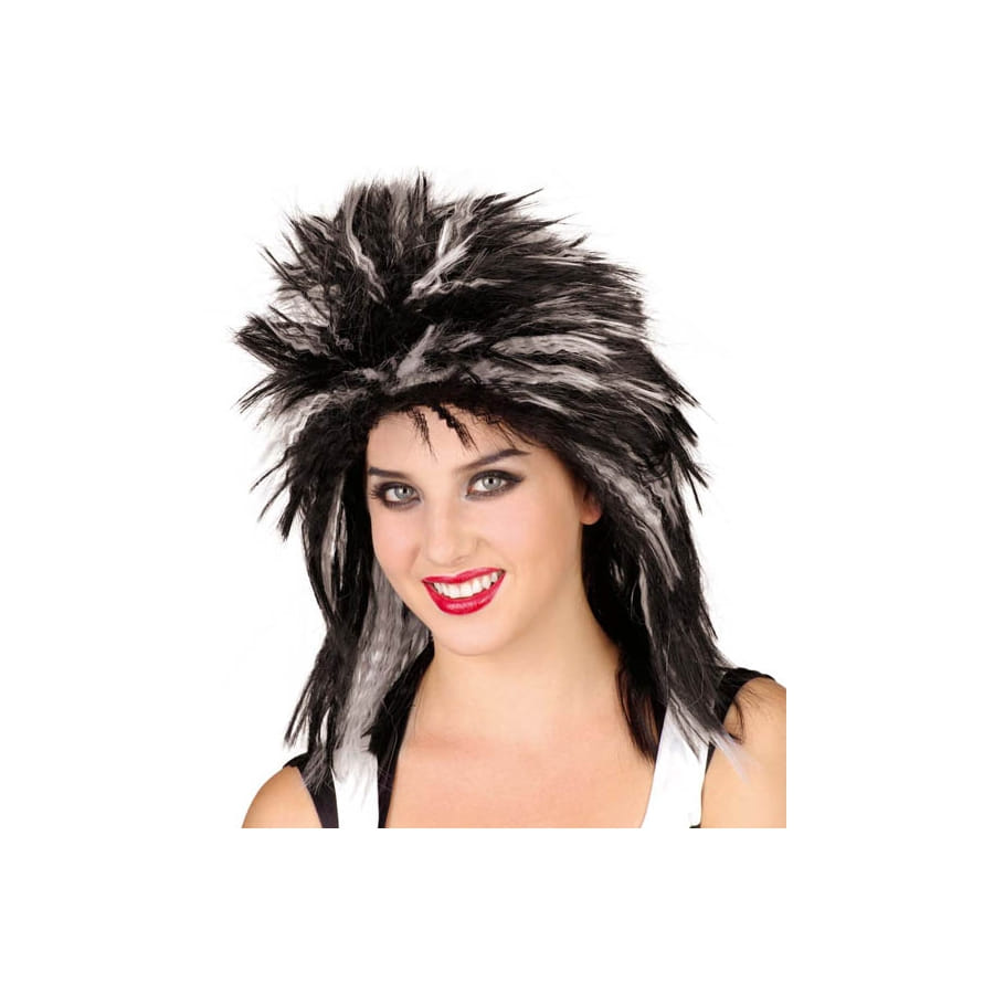 Perruque pour femme, inspirée du look du chanteur de Tokyo Hotel. Cet accessoire est de couleur noir, avec une multitude de mèches blanches. Servez-vous de cette perruque pour vous déguiser en Bill Kaulitz ou pour ajouter une touche Rock à votre déguisement.