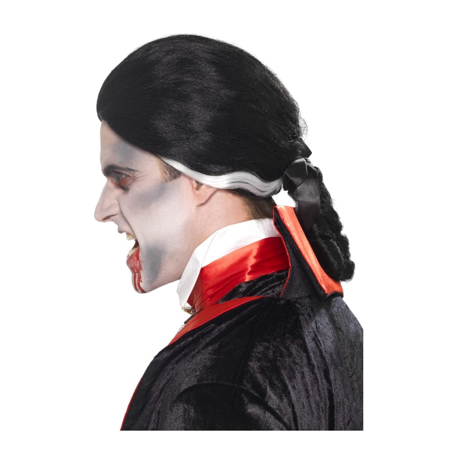 Perruque de vampire colonial pour homme. Cette perruque de couleur noire est soigneusement attaché au bas de la nuque pour une apparence élégante. Vous deviendrez un vampire très classe avec cet accessoire!