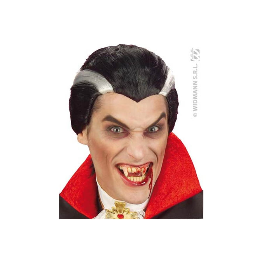 Perruque de vampire Dracula. Cet accessoire pour homme est de couleur noir avec deux mèches blanches. Tout le monde sera époustouflé par cette superbe perruque!