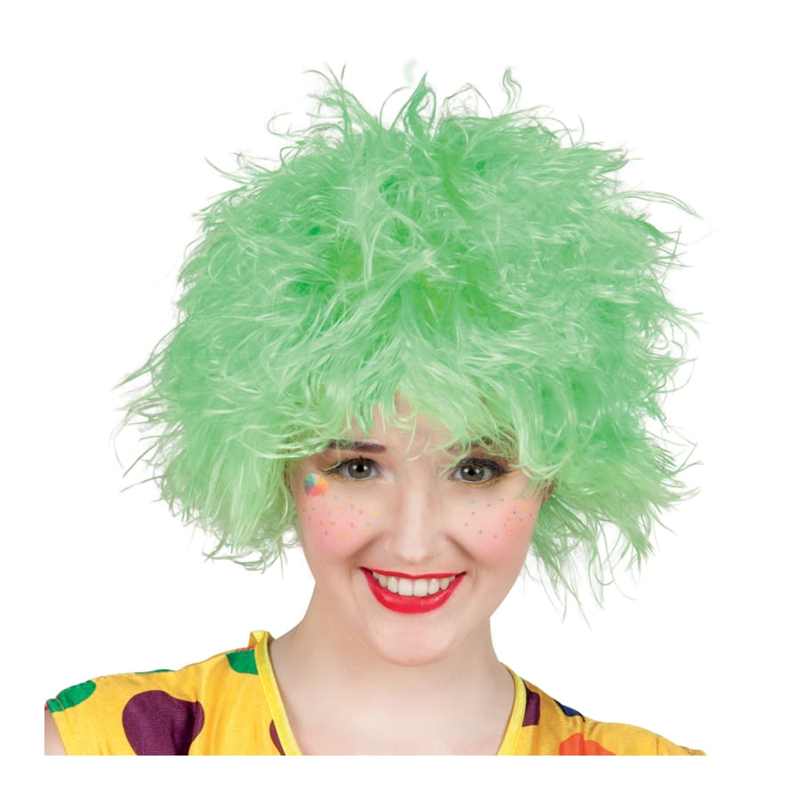 • Perruque ébouriffée de clown, de couleur verte, pour homme et femme.