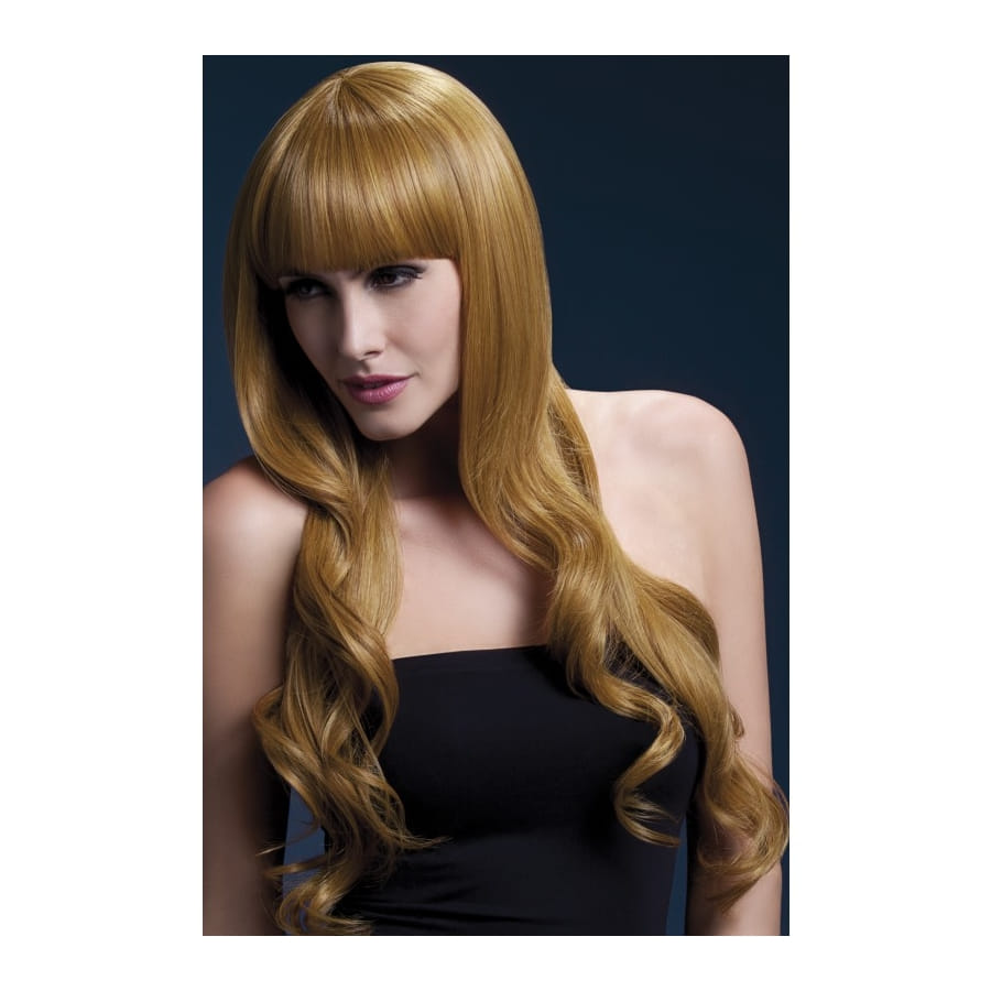 Laissez-vous emporter par cette envoûtante coiffure ! Nous proposons une sensationnelle perruque de 71 cm de long. Vous aurez droit à de longs cheveux lisses et soyeux, avec une frange, dans une couleur très alléchante de brun mélangé au roux, ce qui nous donne la couleur auburn. Cet accessoire vous donnera l'air à la fois sage et soigné. Mais en fonction du maquillage, vous pourrez aussi devenir une séductrice de charme !