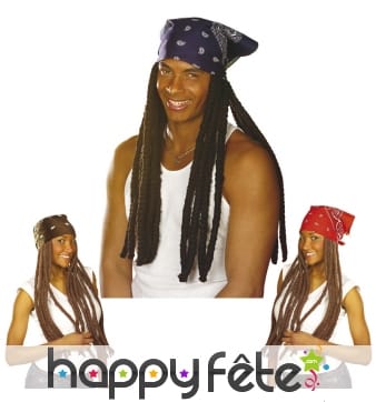 Yo Man ! Bienvenue dans le monde des rastas sur le site Happyfete ! Adoptez une ambiance jamaïcaine lors de la prochaine fête de la musique avec notre vaste panoplie de perruques de rasta. Ces belles perruques serviront surtout aux hommes, car ils pourront ainsi se faire pousser une longue chevelure en deux temps trois mouvements, et incarner ainsi de nombreux personnages, comme un pirate, un Hippie rasta, un danseur, un Jamaïcain etc. La plupart des perruques sont bien sûr tressées, en version dreadlocks, parfois avec des perles ou un bonnet. Les femmes sont également servies pour pouvoir jouer aux rastawomen, avec notamment un modèle très original de cheveux rasta bleu lumineux clignotant, de quoi vous rendre très visible !