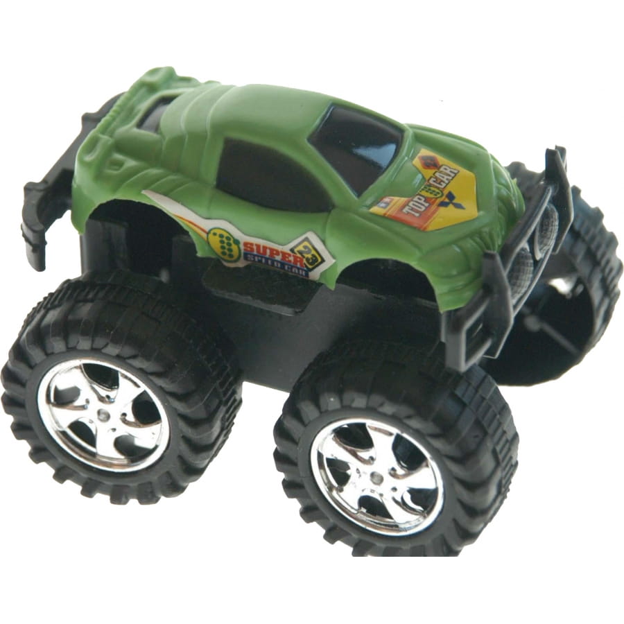 Mini 4x4 de couleur noire et verte et mesurant 6.5 centimètres. Il vous sera impossible de choisir ni le modèle ni la couleur du véhicule lors de la commande; vous le recevrez exactement comme présenté. Ajoutez ce véhicule à la collection de votre enfant.