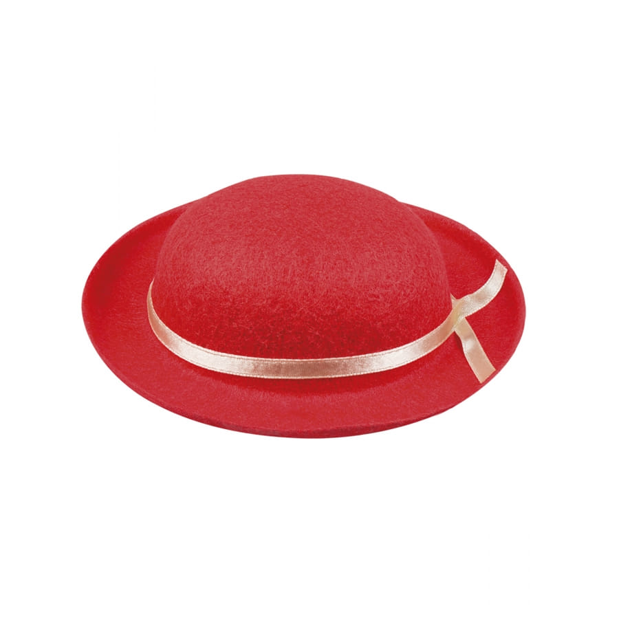 Le petit chapeau melon rouge pour adulte est en feutrine.