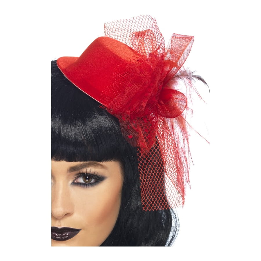Mesdames, soyez au top avec ce petit chapeau rouge, spécialement conçu pour les adeptes des années 20 et 30, du charleston ou du cabaret, pour les grandes danseuses aussi. Le petit chapeau est orné d'un voile fin et d'une petite fleur, le tout en rouge également. Il se porte sur le côté et fera une magnifique décoration pour votre coiffure. Avec une jolie robe rouge ou noire, il sera parfait.