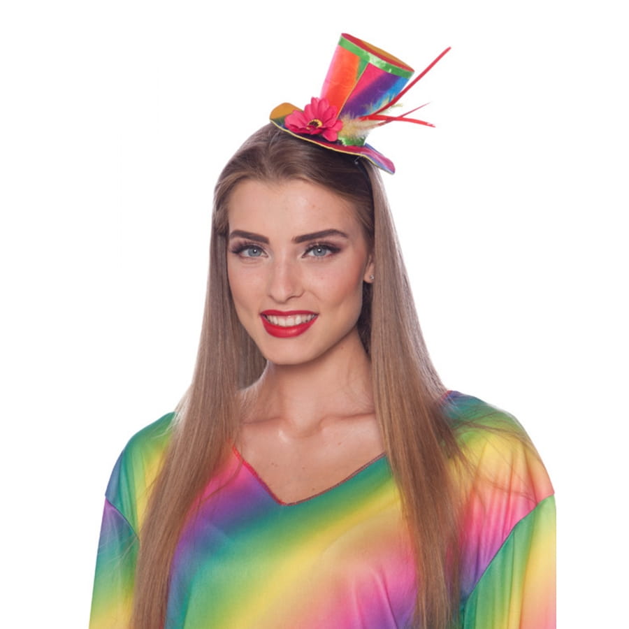Ajoutez une touche d'humour à votre tenue de carnaval, en arborant ce petit haut de forme coloré de clown sur serre-tête.