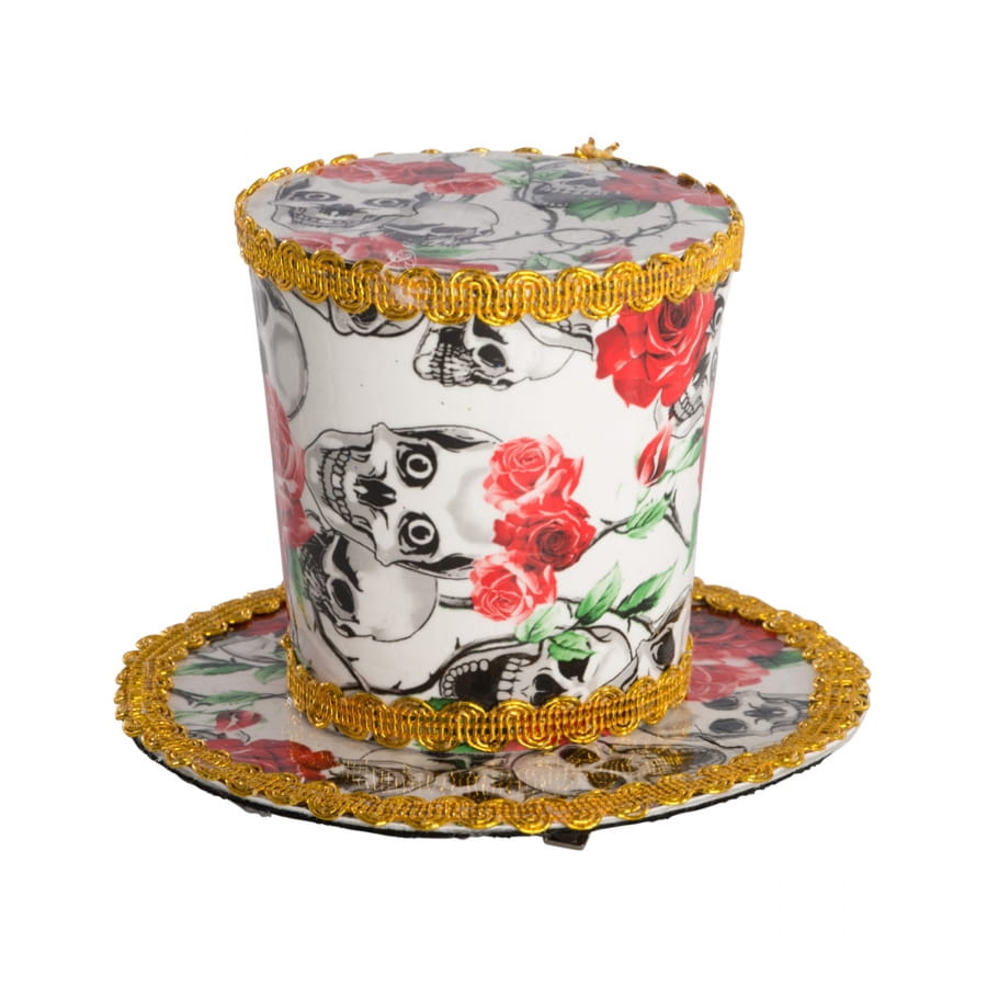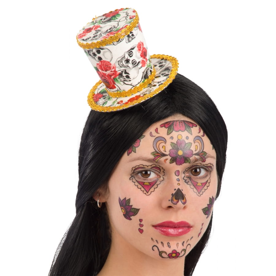 Pour parfaire votre look de squelette le soir d'halloween, coiffez vous de ce petit haut de forme Dia de los muertos pour femme.