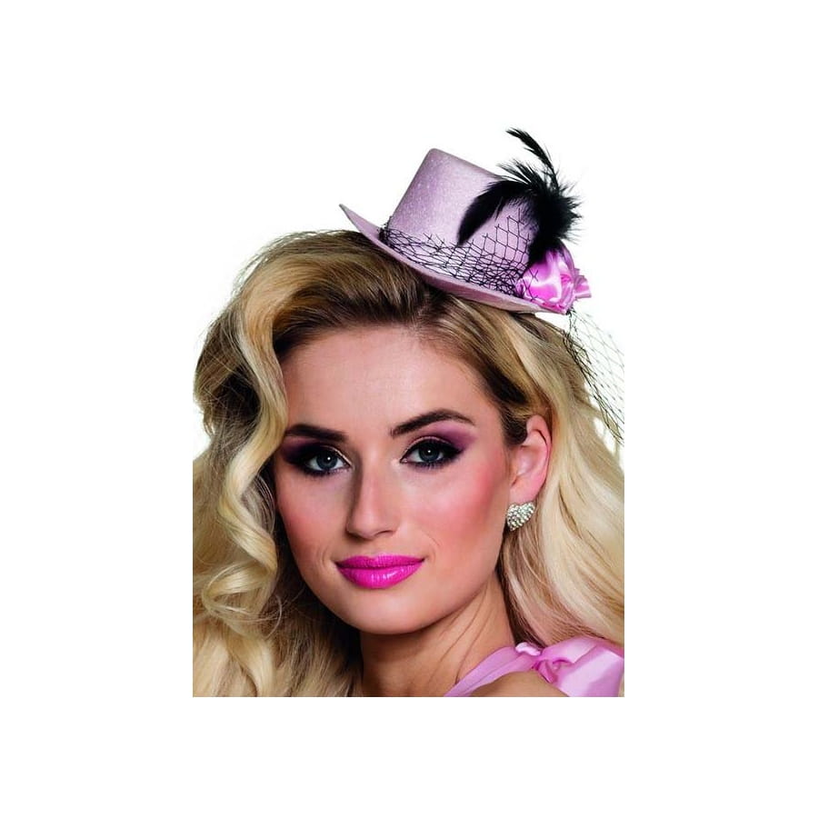 Le petit haut de forme rose style années 20 est un mini chapeau pour femme.